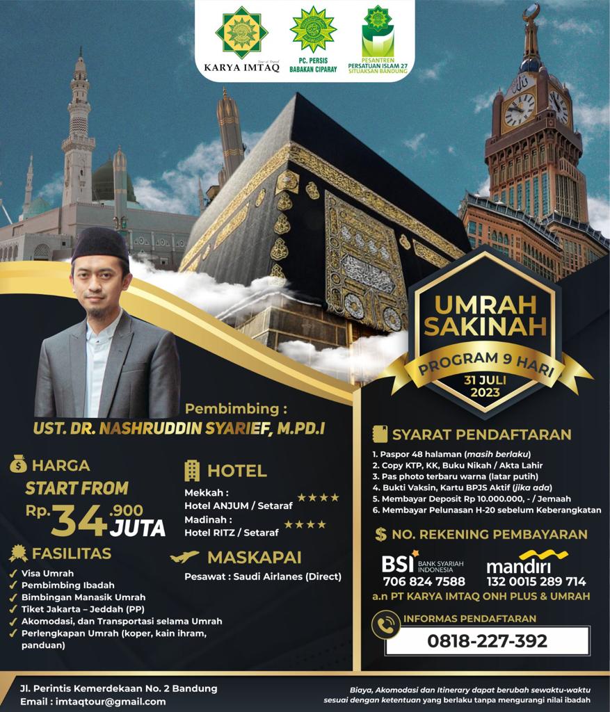 Bandung, pesantrenpersis27.com – Pada hari Sabtu, 29 Juli 2023, Kegiatan Sabaqa atau Semalam Bersama Adab dan Al-Qur’an kembali digelar dengan mengusung tema “Adab dalam Ilmu”. Kegiatan Sabaqa ini merupakan kegiatan rutin bulanan untuk santri Pesantren Persis 27 juga untuk masyarakat secara umum. Sabaqa biasa dilaksanakan di pekan ke-4 tiap bulannya di hari Sabtu. Kegiatan ini… Continue reading Sabaqa Kembali Digelar dengan Tema “Adab Dalam Ilmu”